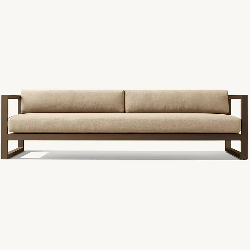 Brúni veröndarsófinn okkar er smíðaður með traustri álgrind, sem tryggir að hann haldist léttur en endingargóður. Ál, þekkt fyrir ryðþol og styrkleika, er tilvalið efni fyrir útihúsgögn og gefur grunninn að varanlegum fjárfestingum. Glæsilegur brúni áferðin bætir ekki aðeins við fágun heldur bætir hann einnig við hvaða verönd sem er, allt frá klassískum til nútímalegra.