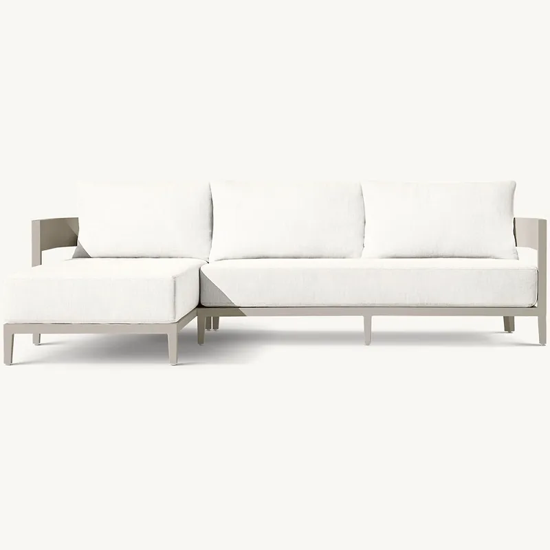 Umbreyttu veröndinni þinni eða garðinum í lúxus athvarf með Útihornsófanum okkar áli. Þessi sófi er ekki bara húsgögn heldur lífsstílsaukning, sem býður upp á hina fullkomnu blöndu af stíl, þægindum og endingu. Uppgötvaðu hina fullkomnu leið til að njóta útirýmisins með fágaða og hagnýta sófanum okkar.