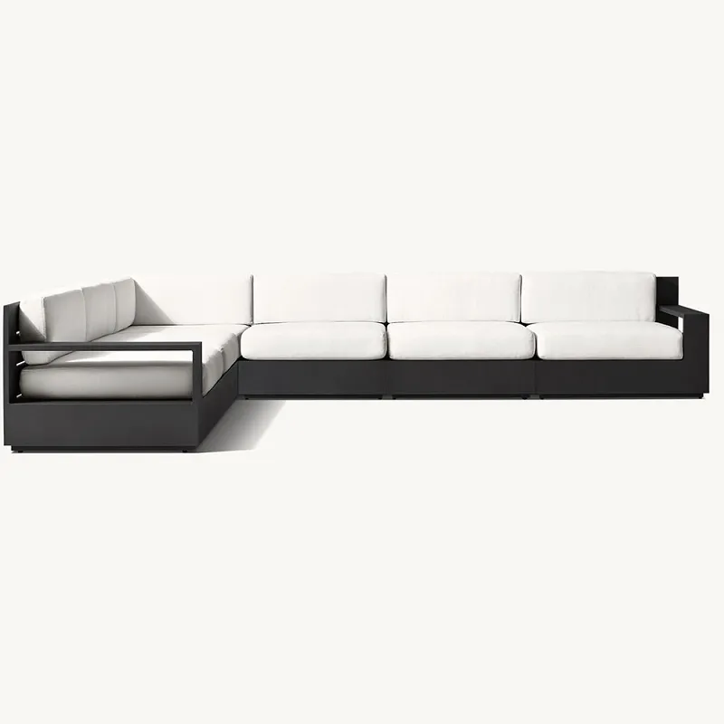 The sectional sófi fyrir verönd er ekki bara varanlegur; það er líka hannað til þæginda. Einingahönnunin gerir þér kleift að sérsníða skipulagið að veröndinni þinni og sætaþörfum, sem gerir það fullkomið fyrir samkomur eða afslappandi kvöld utandyra. Hvert stykki er búið þykkum, mjúkum púðum sem veita framúrskarandi þægindi og stuðning, bólstrað með hágæða, veðurþolnu efni til að standast veður.