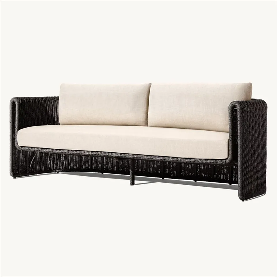 Wicker Rattan útisófi hefur fleiri kosti en venjulegir sófar. Það hefur framúrskarandi öndun, sem gerir þér kleift að njóta hressandi tilfinningar jafnvel á heitum sumardögum. Á sama tíma, vegna trausts og endingargots eðlis, geturðu örugglega skilið það eftir til notkunar utandyra í langan tíma án þess að hafa áhyggjur af því að það skemmist eða dofni.